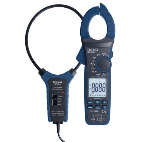 The R5055-KIT includes the R5055 True RMS Clamp Meter and the R5065 Flexible Current Probe. This True RMS clamp meter can measure up to 1000V and 1000A in both AC/DC modes and comes equipped with an 18" Flexible Current Probe which provides measurement flexibility up to 3000A AC.