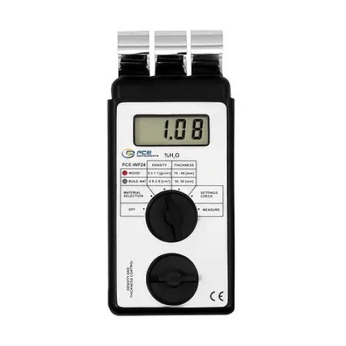 PCE-WP24 is a humidity detector for wood used to perform noninvasive, nondestructive moisture measurements of wood, timber and other construction or building materials. An ideal tool for assessing everything from lumber to floors and more, this humidity detector uses electromagnetic waves that penetrate approximately 50 mm / 1.96 inches to 60 mm / 2.36 inches deep (depending on substrate) to return a mean-value moisture content percentage.