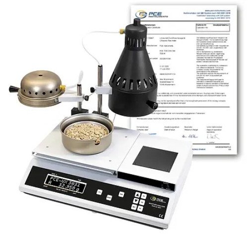 The Humidity Detector has two adjustable heating temperature ranges: 40 °C ... 180 °C and 105 °C ... 360 °C - which are made possible by two powerful radiant heaters: a 250 W infrared heater and a 375 W quartz heater. These heating elements ensure precise and efficient drying results and can be operated independently of each other in timer or automatic mode. For measurement evaluation, the device offers various parameters such as % moisture, % dry matter, % moisture ATRO as well as g residual weight / kg and residual weight, which enable the sample to be analysed.