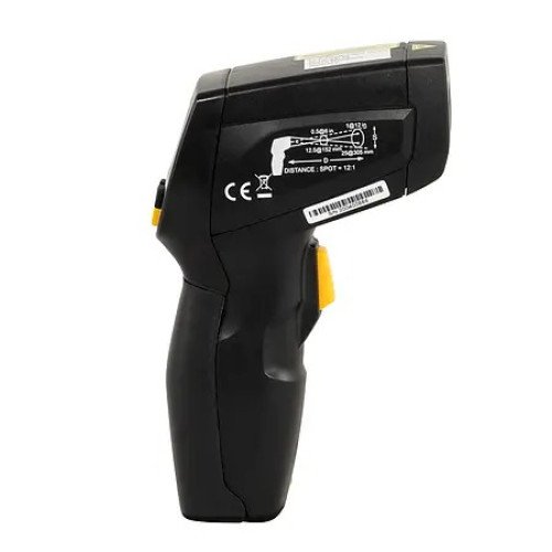 To switch on the infrared thermometer, the measuring button must be pressed. The measurement is then immediately taken by the infrared thermometer. If the key is released, the last value remains on the display of the infrared thermometer until a new measurement is taken. The infrared thermometer can optionally be equipped with an ISO calibration certificate.
