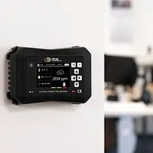 The Carbon Dioxide Meter is specially designed for long-term monitoring of climatic conditions in, for example, offices, classrooms or lecture halls. The Carbon Dioxide Meter has various sensors. Among other things, the Carbon Dioxide Meter has a carbon dioxide sensor up to 40,000 ppm, a temperature sensor with a measuring range between 0 ... 50 °C, an ambient humidity sensor with a measuring range between 0 ... 100% RH and a barometer with a measuring range between 300 ... 2000 hPa. The Carbon Dioxide Meter can therefore be used in many applications due to its large number of sensors. The measured values are shown directly on the e-paper display of the air quality measuring device. A good / medium / bad rating of the carbon dioxide content in the ambient air is also displayed.