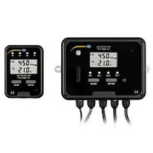 The CO2 warning device PCE-WMM 100 consists of a main unit and a remote display. The CO2 gas detector PCE-WMM 100 is used to measure carbon dioxide and oxygen in a fixed location. The CO2 warning device protects people from the odourless gas CO2 and also warns of low oxygen content in the air. The gas warning system displays the measured values on an LCD. The PCE-WMM 100 CO2 warning device has two relays that can be used to control alarm lights or sounders. Furthermore, the CO2 warning device has an integrated, acoustic alarm, which emits an audio signal of 80 db in the event of an alarm.