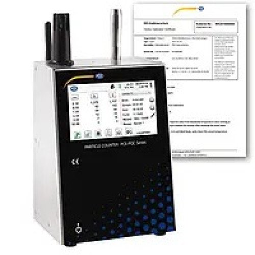 Counting of six particle sizes / Flow rate of 2.83 l / min / 4.3" color touch display / Ethernet and USB (optional Wifi) / Incl. temperature and humidity sensor