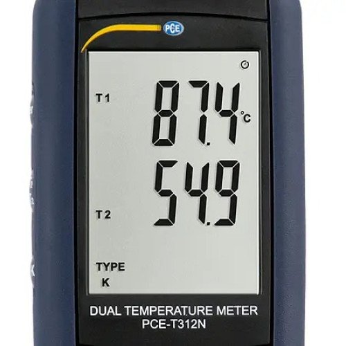 The temperature meter is a two-channel measuring instrument. The digital temperature measuring device offers possibilities for a multitude of measuring projects. Due to its compact dimensions and its power supply, the digital temperature measuring device can be used with a mobile battery, making it suitable for applications such as air conditioning, food production and food storage, agriculture, chemicals and industry. The large measuring range offers a wide range of application possibilities, since in addition to the electronic zero offset, a temperature measuring range of -210 ... 1372°C / -346 ... 2501°F is possible.