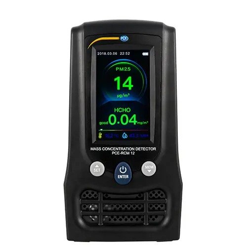 Air quality monitor for indicative measurement of environmental conditions / Determination of CO2, HCHO, particulate matter (PM2.5 / PM10) / Temperature und relative humidity / 3" TFT LCD Display