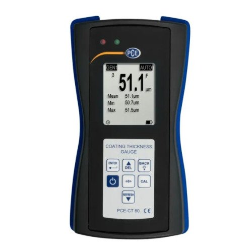 The ergonomically designed material tester with external sensor allows you to rapidly determine measurement results with high accuracy. The coating thickness gauge measures non-magnetic layers such as paint, plastic, chrome, copper, zinc, enamel, etc. on steel/iron, as well as non-conductive layers such as paint, plastic, enamel, paper, glass, rubber, etc. on copper, aluminum , brass and stainless steel, as well as anodized aluminum.