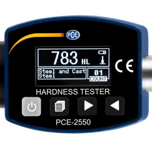 The measured values can be stored in the PCE-2550 and later read out and processed via the available software. Up to 350 data groups can be stored in the metal hardness tester. The OLED display can also be read well in dark environments.
