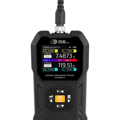 The Milliohmmeter is a compact and easy-to-use device for testing the battery quality of various battery types such as lithium, alkaline and lead-acid batteries. The Milliohmmeter can automatically test the internal resistance and voltage simultaneously, with the measurement results clearly shown on the 2.4-inch colour display. The voltage and resistance ranges can also be set manually.