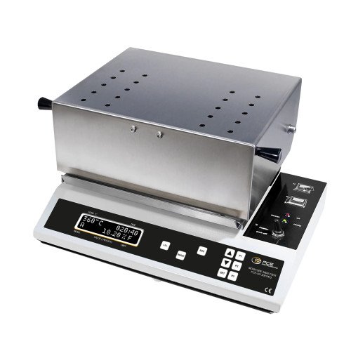 With a maximum weighing capacity of 400 g, a volume of 360 cm³ and a high measuring resolution of 0.001 g, the Moisture Meter for metal chips enables precise and reliable moisture measurements. The balance works according to the principle of drying with simultaneous weighing: the weight loss is continuously recorded and displayed as a percentage of the total mass. With a heater output of 2 x 400 W and an adjustable heating temperature of 105 °C to 360 °C, the Moisture Meter offers quick and flexible drying of samples. The device provides various parameters for analysis, including % moisture, % dry matter, % moisture bd as well as g residual weight/kg and residual weight.