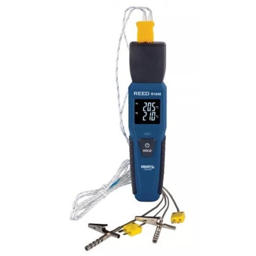 The R1640-KIT3 includes a Data Logging Bluetooth Smart Series Thermocouple Thermometer (R1640), and 2 Type-K versatile air probes (R2980) specifically designed to monitor ambient air temperatures in various food service equipment including ovens, refrigeration units, and freezers.