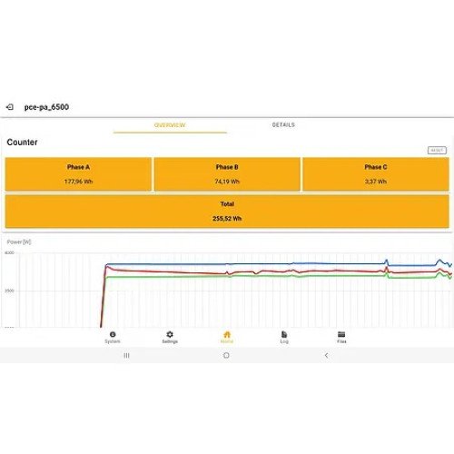 Alternatively (if no internet connection is available), the data can be recorded in the built-in 32 GB flash memory in the form of a CSV file for further processing at a later date. An SD card adaptor is also available as an accessory, which means that the recording duration is more than one year, even when recording to the second. It is also possible to send the CSV files periodically by e-mail, upload them to a server via FTP or transfer them to the measurement platform once the measurement has been completed. Interaction with the Clamp Meter is mainly via Wi-Fi and web browser or via app (BLE).