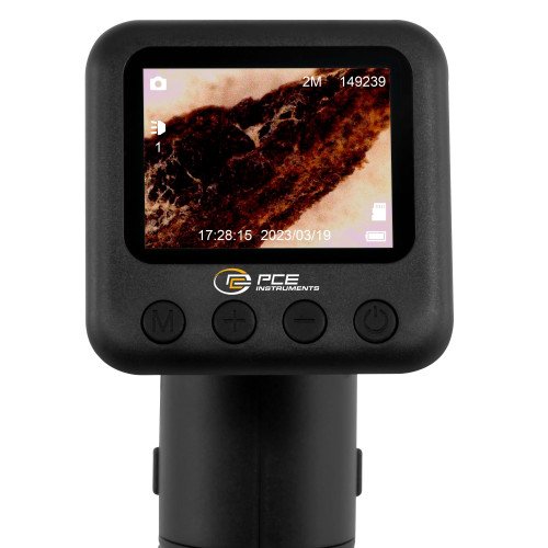 Furthermore, the loop recording function enables continuous video recordings, whereby older recordings are automatically overwritten when the memory is full. This is particularly useful for longer monitoring sessions. With a compact size of 165 x 60 x 60 mm and an integrated, rechargeable lithium battery with an operating time of up to 3 hours, it is suitable for mobile use. The microscope switches to standby mode after 30 seconds, 1 minute or 2 minutes of inactivity to save energy. When connected to a PC, the image can be transferred to the computer monitor or the memory can be read out directly.