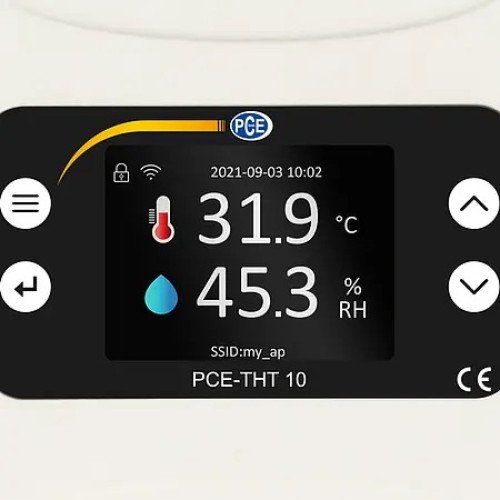 Analysis of the measured values recorded can be carried out with the software for the humidity detector. If there are several thermo-hygrometers in a network, all of them can be controlled by the software at the same time. The thermo-hygrometer software can be found in the PCE Instruments download portal.