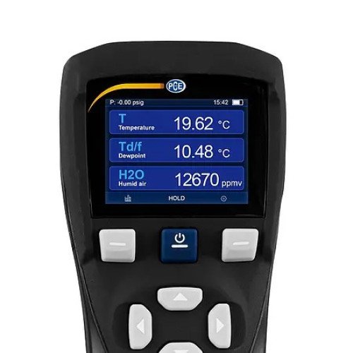 The HVAC meter is a mobile testing device for monitoring the quality of compressed air on stationary and mobile compressed air generators. This HVAC meter measures the temperature, the relative humidity, H2O and calculates the current dew point up to an ambient pressure of 20 bar. Thanks to the sintered cap, the HVAC meter in the pressure lines is protected from dirt, moisture and high flow speeds. This increases the service life of the HVAC meter's sensors.