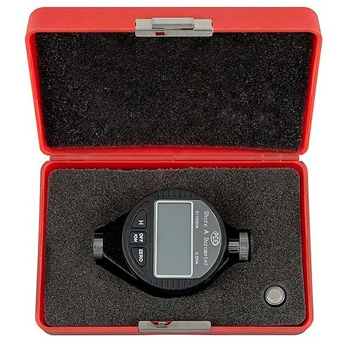 To measure Shore A hardness in soft gums, rubber and elastomers / Easy-to-read digital display / Resolution of 0.5 degrees of hardness