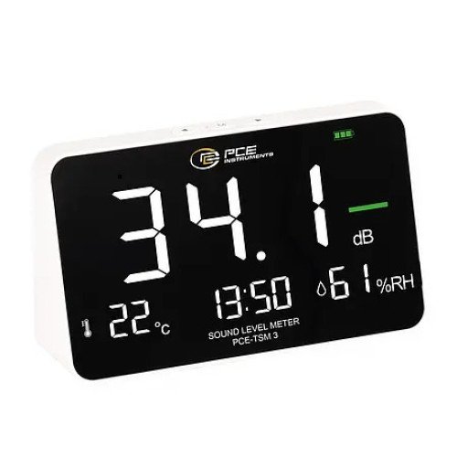 Technically, the table-top device impresses with a numerical display in combination with a clearly visible traffic light display, which enables a quick assessment of the noise exposure. The 6.9 inch display offers a clear presentation of all relevant values, including a clock display and adjustable display brightness for different lighting conditions. A battery level indicator provides reliable information about the current charge status of the integrated lithium battery, which can be charged via a modern USB-C interface.