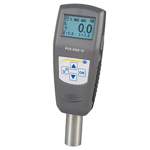 The PCE-DDD 10 Shore D Material Tester is a portable handheld device used to check Shore D hardness in hard rubber and thermoplastic. This digital Material Tester has a reading accuracy of 0.1 hardness units. The Material Tester comes manufacturer calibrated and can be optionally certified to ISO standards for an additional fee (see accessories for details).