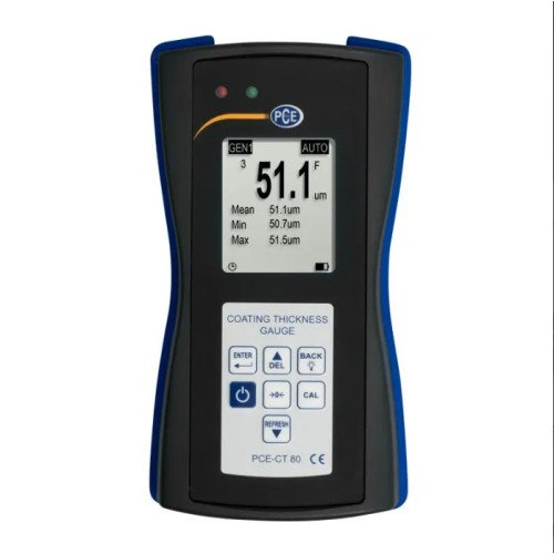 The ergonomically designed material tester with external sensor allows you to rapidly determine measurement results with high accuracy. The coating thickness gauge measures non-magnetic layers such as paint, plastic, chrome, copper, zinc, enamel, etc. on steel/iron, as well as non-conductive layers such as paint, plastic, enamel, paper, glass, rubber, etc. on copper, aluminum , brass and stainless steel, as well as anodized aluminum.