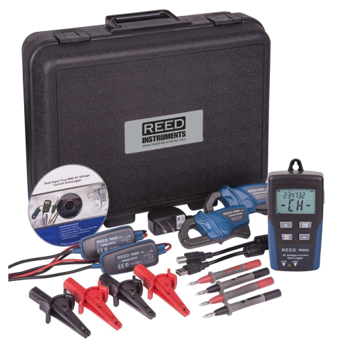 Simultaneously measure 2 AC voltage inputs or 2 AC current inputs or 1 AC voltage and 1 AC current input. The R5003 can operate remotely with batteries or be plugged in with the included AC adapter. Stored measurements can be downloaded via USB interface and either analyzed with the included software or exported to Microsoft Excel.