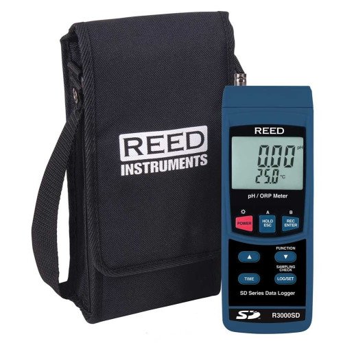 The R3000SD is capable of measuring 0.00 to 14.00 pH and 0 to 1999 mV (ORP). Featuring automatic temperature compensation, Data hold, Max/Min functions, and an easy-to-read backlit LCD display. Using a SD card (max 16GB), a user can manually record up to 99 readings or automatically by selecting a desired sampling rate from 1 to 3600 seconds. Quickly generate an Excel file with raw data, all without the use of software. Optional accessories include a tripod and AC adapter for continuous long-term monitoring. Please note pH and ORP electrodes are sold separately.